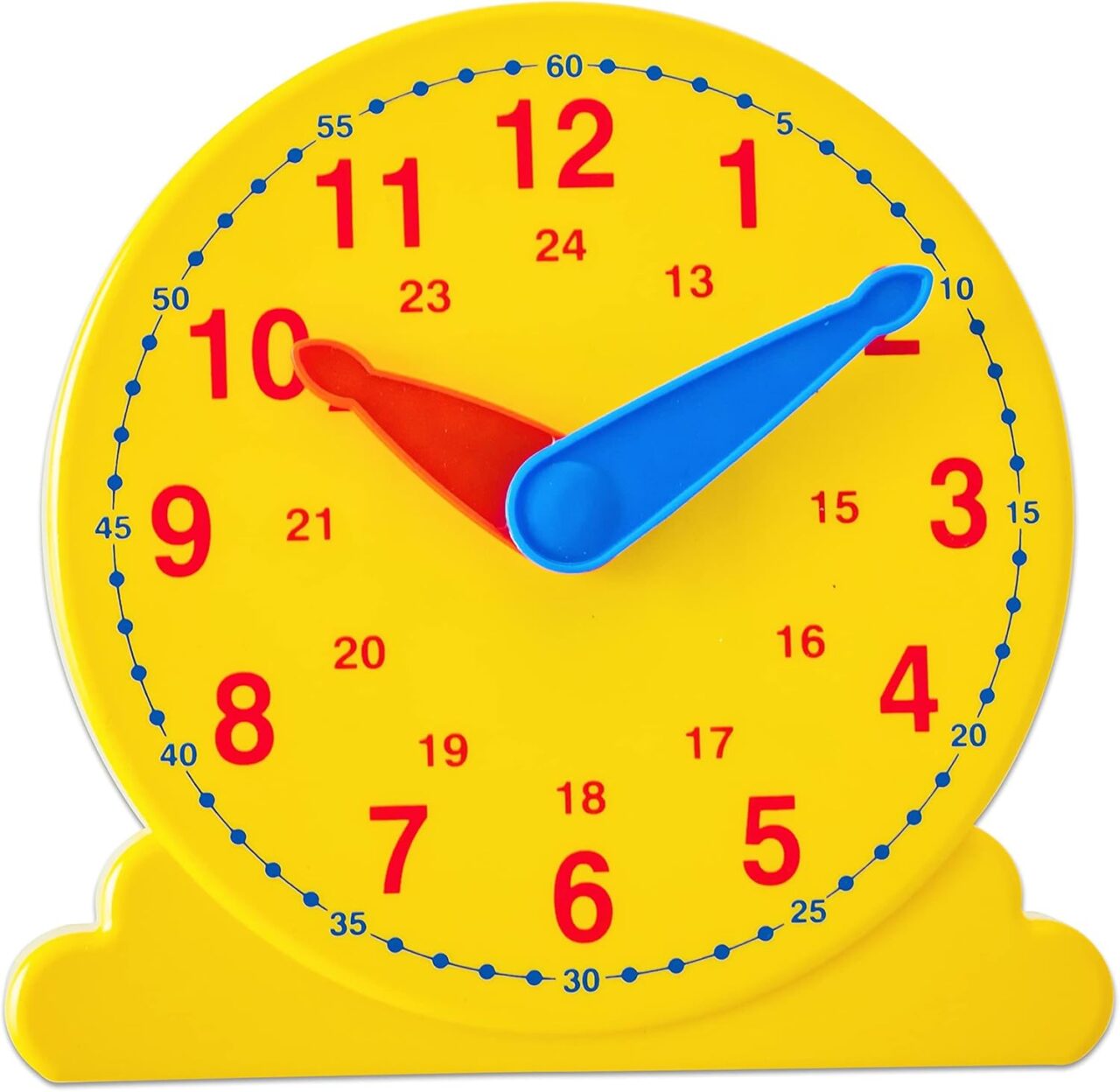 Kompakte Kunststoff Uhren, oft im Klassensatz erhältlich, bei denen jedes Kind selbst drehen kann. Zu Hause reicht eine Schüleruhr, mit der Dein Kind Uhrzeiten nachstellt, die Du ansagst.
